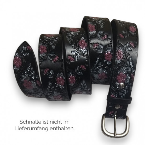Ledergürtel 4cm "Floral" schwarz-silber